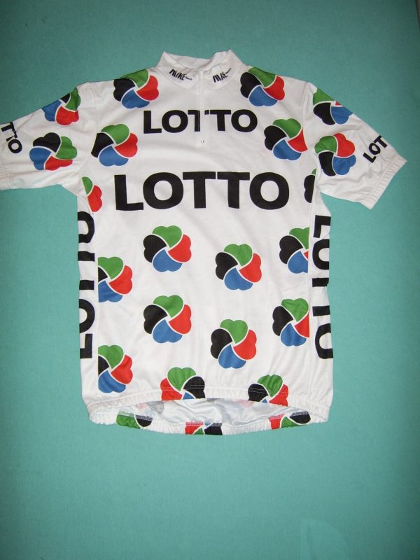 Sie bestellen eine Nachbildung des Original-Radtrikots. Für Männer, Frauen und Kinder. Wird mit einem versteckten langen Reißverschluss geliefert und ist sowohl mit kurzen als auch mit langen Ärmeln erhältlich. Kleine Unterschiede möglich. Siehe Bedingungen, Arbeitsweise, Lieferzeiten, Modell und Maße >>>